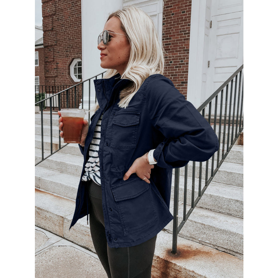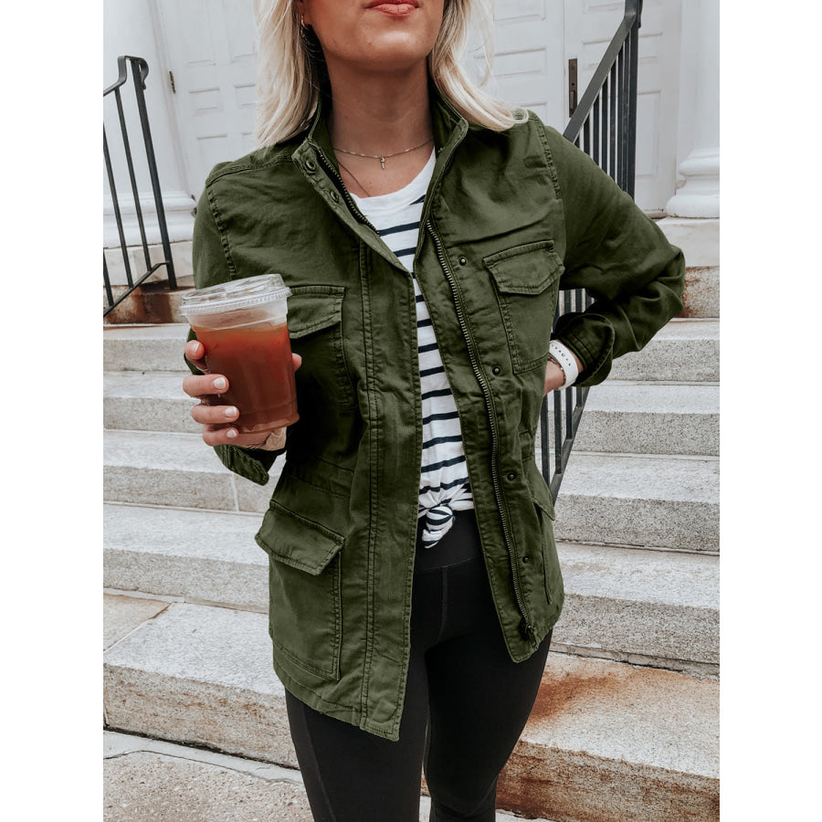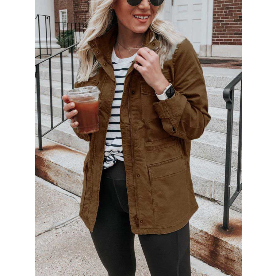 Pocketed Long Sleeve Zip Up Jacket