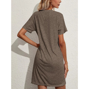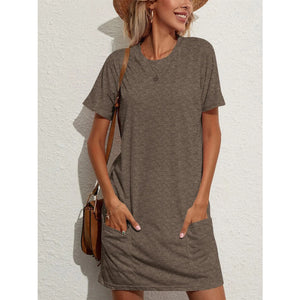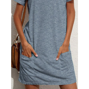 Pocketed Round Neck Short Sleeve Mini Tee Dress