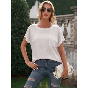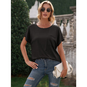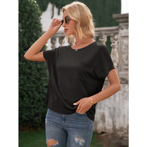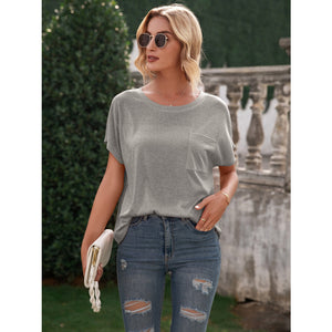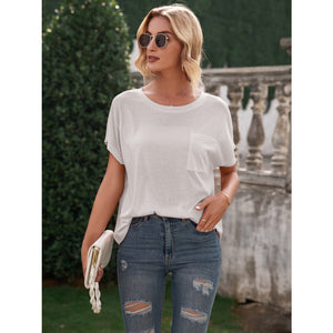 Pocketed Round Neck Short Sleeve T-Shirt