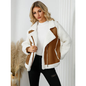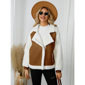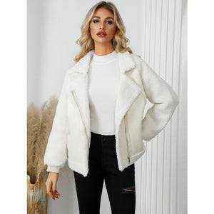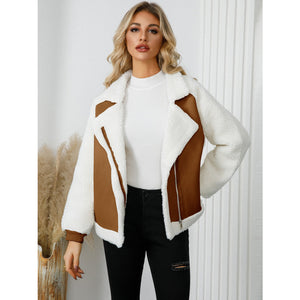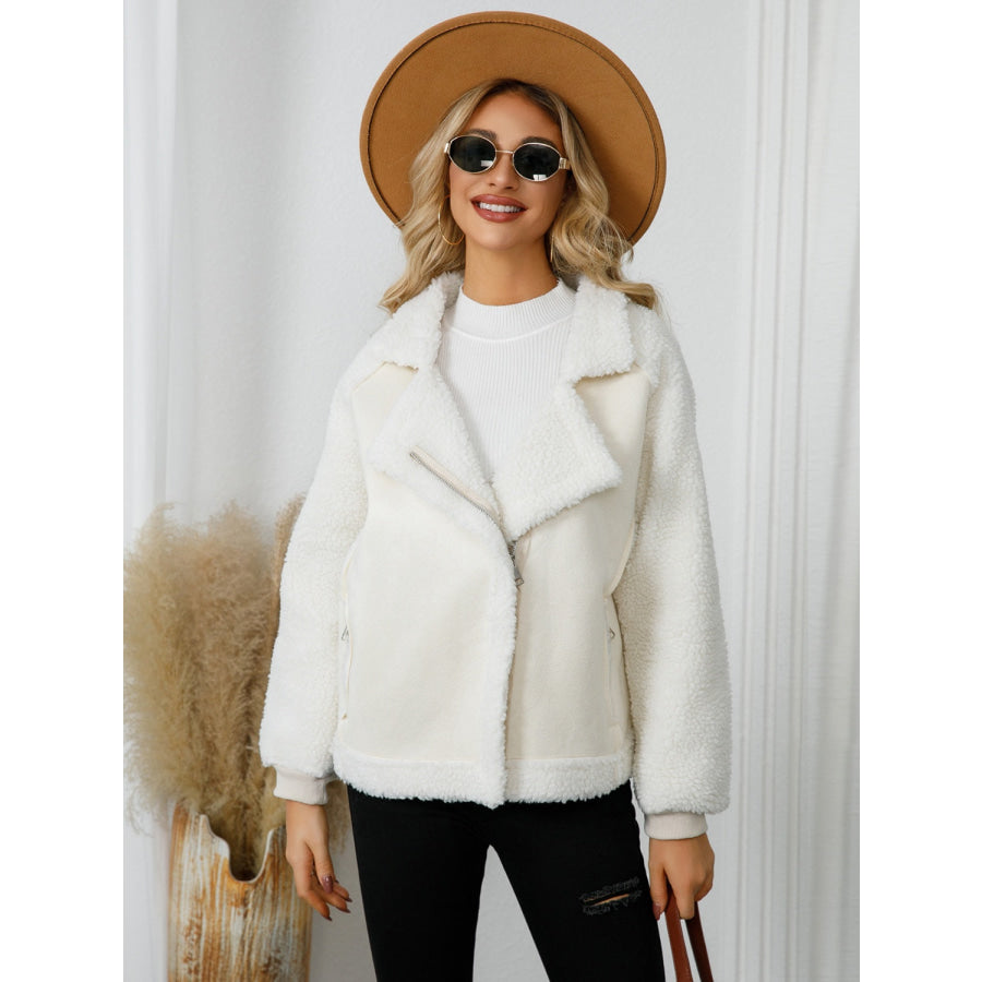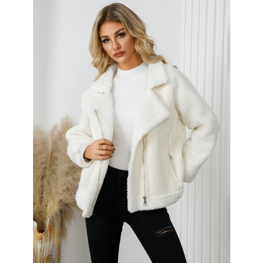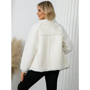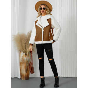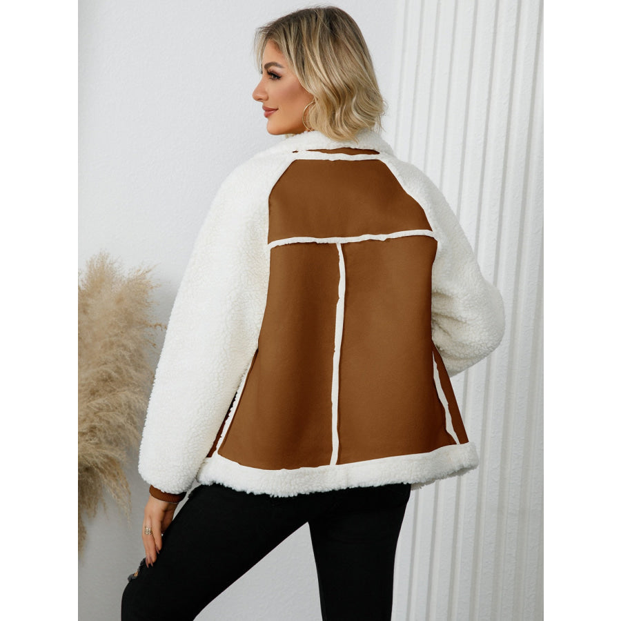 Pocketed Sherpa Zip Up Long Sleeve Jacket