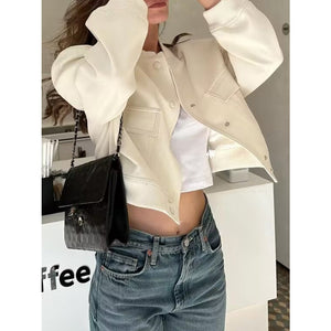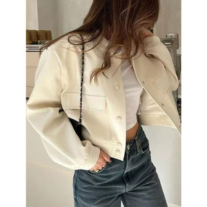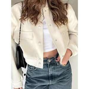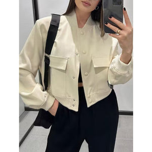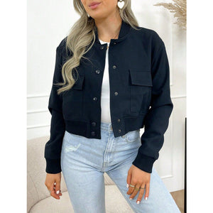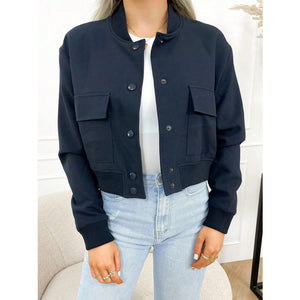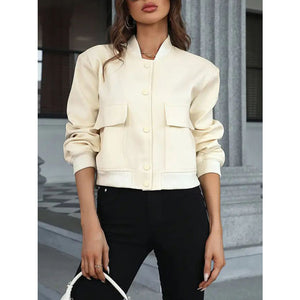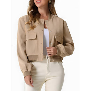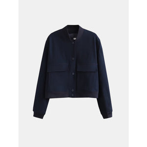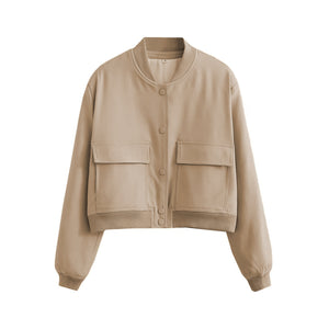 Pocketed Snap Down Baseball Collar Jacket