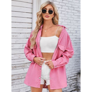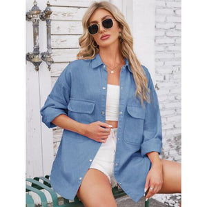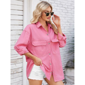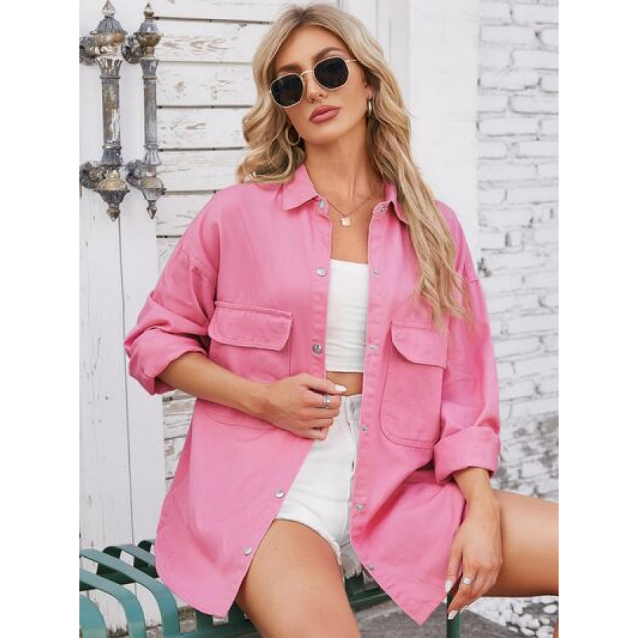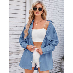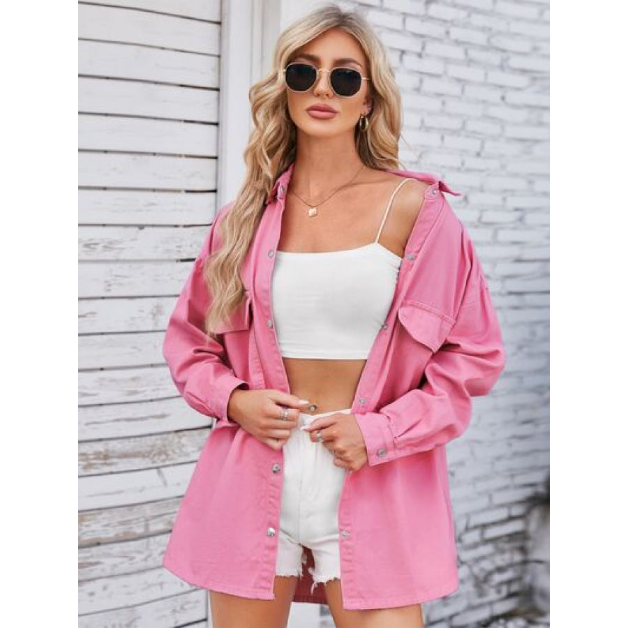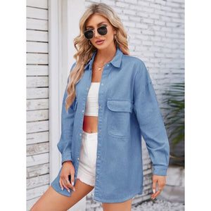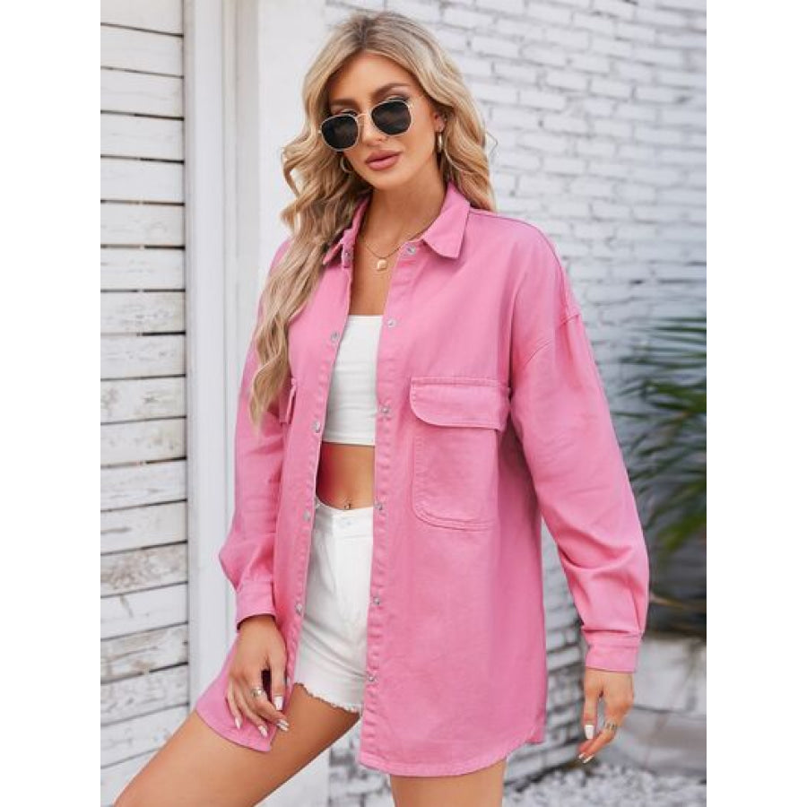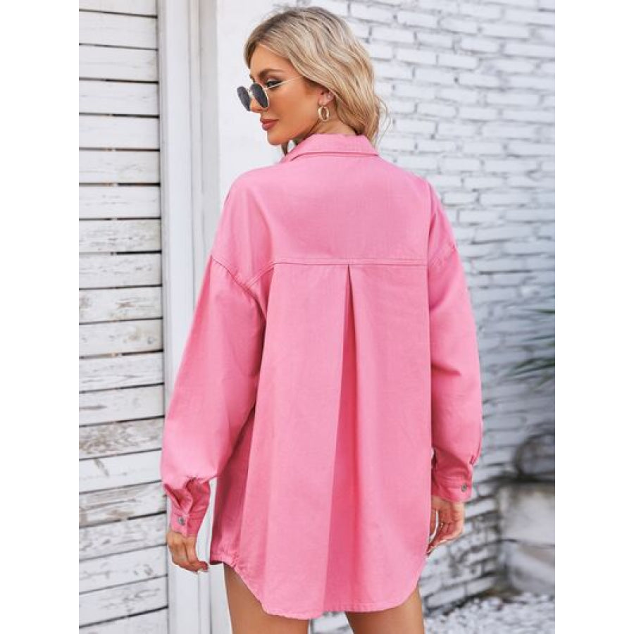 Pocketed Snap Down Dropped Shoulder Denim Shacket