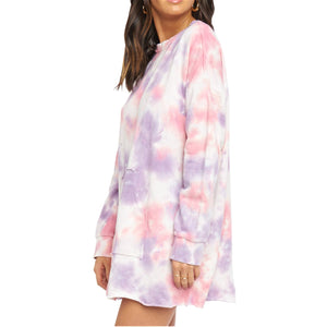 Pocketed Tie-Dye Round Neck Long Sleeve Dress