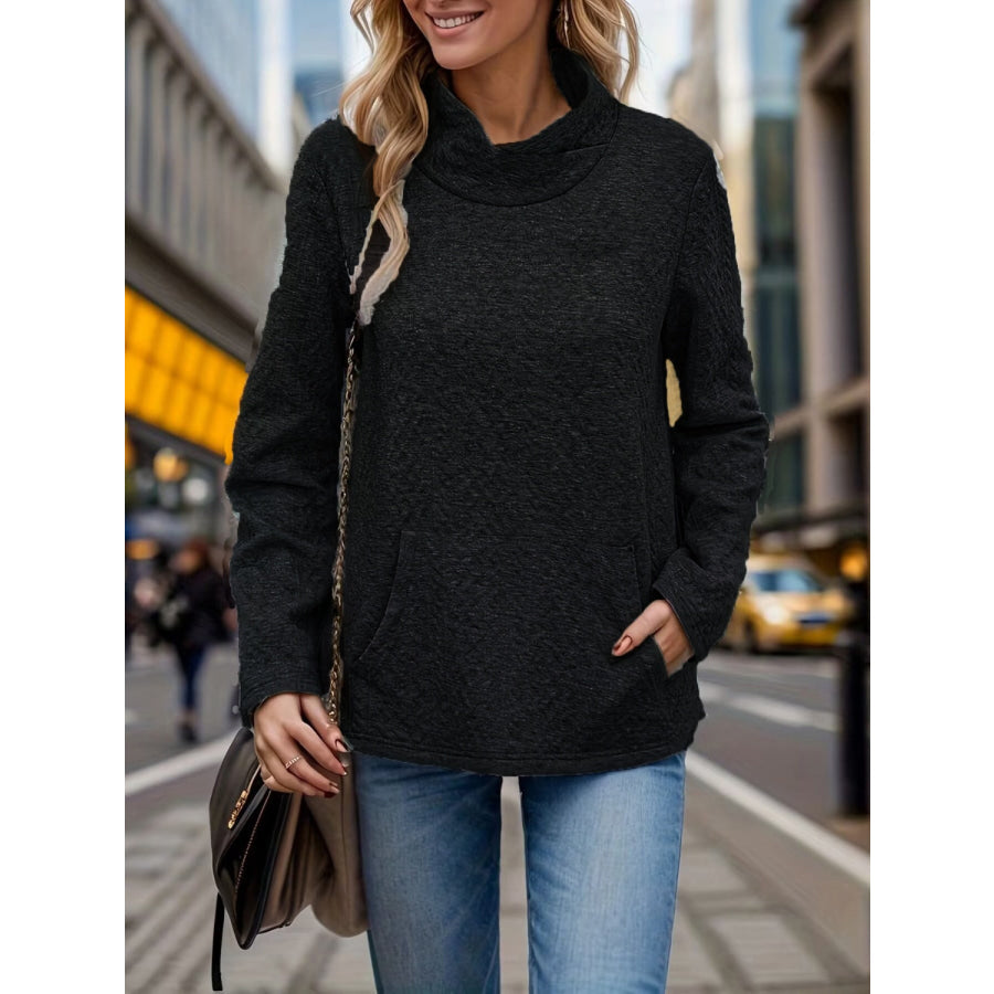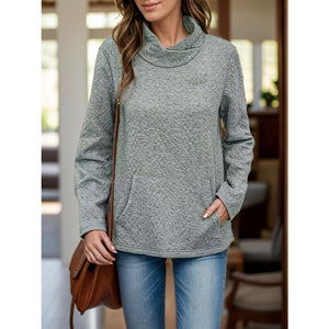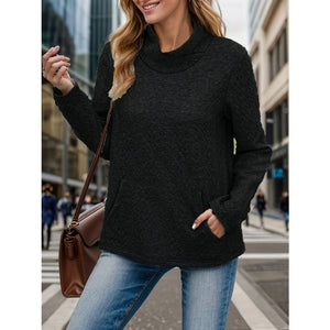 Pocketed Turtleneck Long Sleeve Sweatshirt