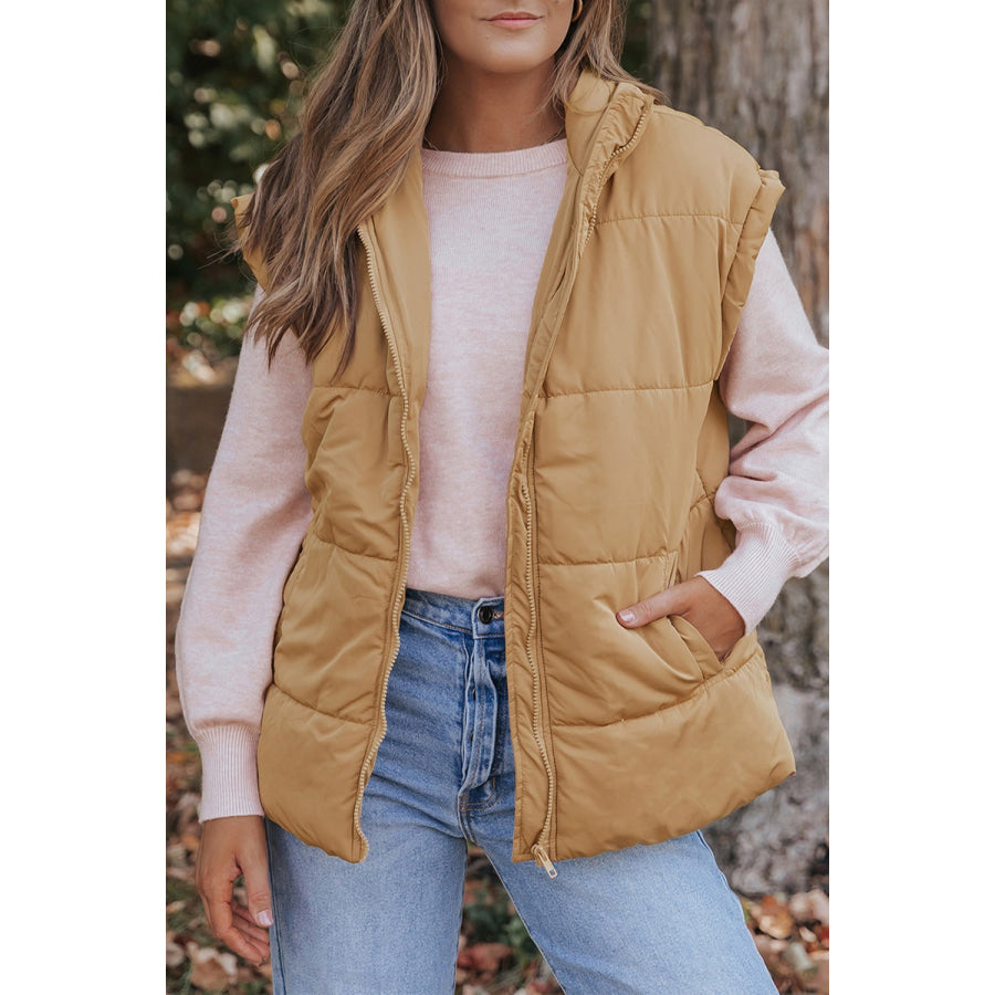 Pocketed Zip Up Vest Coat