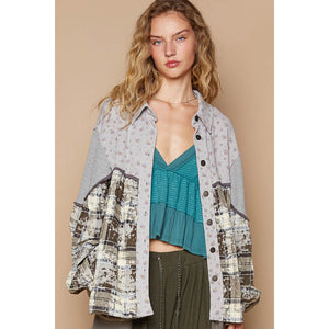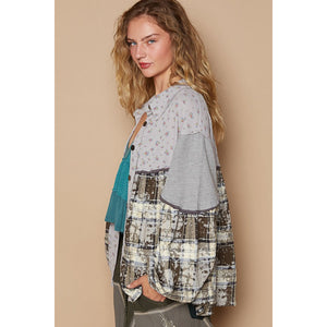 POL Balloon Sleeve Floral Color Block Plaid Shirt
