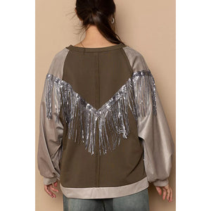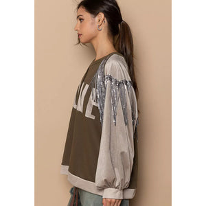 POL Balloon Sleeve French Terry Sweatshirt with Sequin Tassel