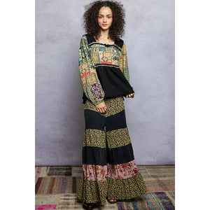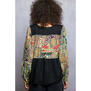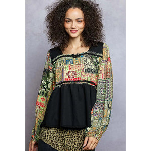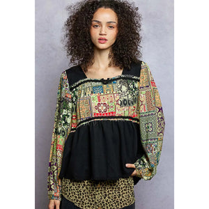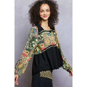 POL Balloon Sleeve Peplum Blouse with Trim Detail