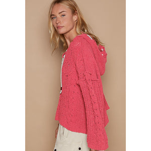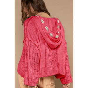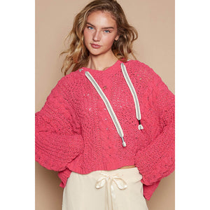 The Cable Knit Hooded Chenille Sweater is a cozy and stylish addition to your winter wardrobe. This sweater features a V-neck hoodie, long sleeves, and a roomy fit for ultimate comfort. The chenille fabric adds a soft and luxurious feel, perfect for keeping warm during colder days. The tie detail adds a touch of charm and uniqueness to the pullover sweater. Elevate your look with this chic and comfortable cable knit sweater that is perfect for casual outings or lounging at home. Stay cozy and on-trend with the Cable Knit Hooded Chenille Sweater, a versatile piece that will keep you looking stylish all season long.