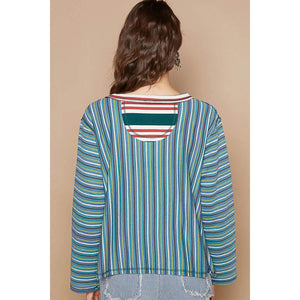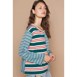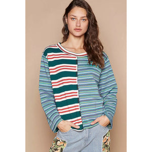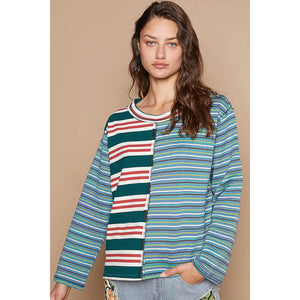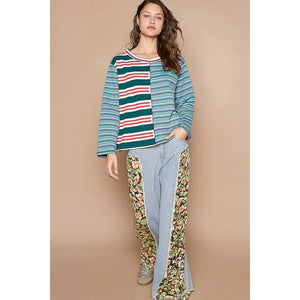 POL Color Block Striped Round Neck Long Sleeve T-Shirt