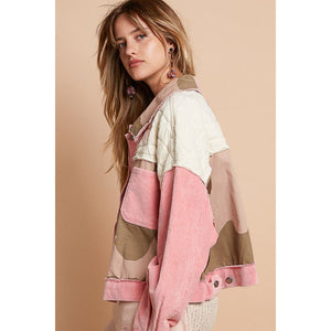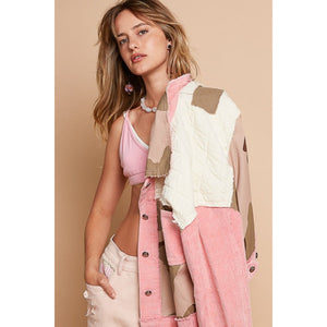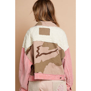 POL Corduroy Jacquard Patchwork Button Up Jacket