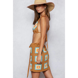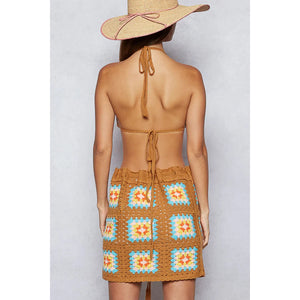 POL Crochet Halter Neck Cami and Skirt Sweater Set