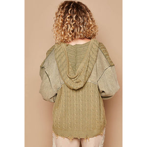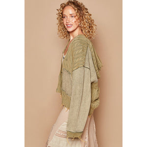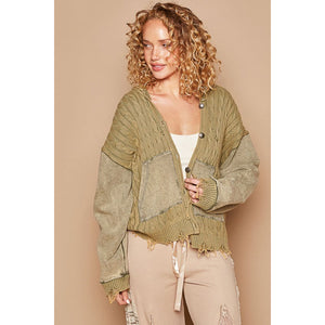 POL Distressed Hem Button Up Hooded Cardigan