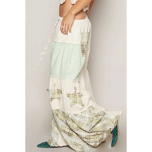 POL Drawstring Star Patch Contrast Wide Leg Pants