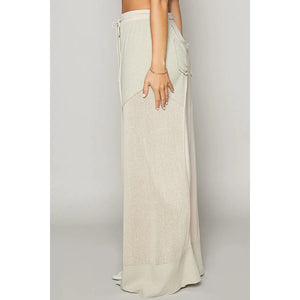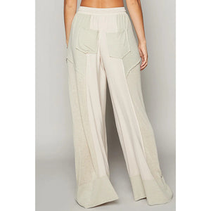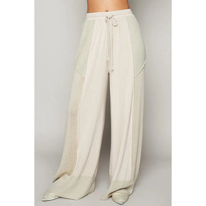 These relaxed wide leg lounge pants feature a comfortable elastic waistband with adjustable drawstring closure for a perfect fit. Crafted from lightweight, breathable fabric in a versatile neutral beige tone, they offer ultimate comfort for lounging or casual outings. The flowing wide leg silhouette creates an elegant drape while providing maximum freedom of movement. The high-waisted design offers a flattering fit, while the minimalist styling makes them easy to pair with various tops. Perfect for those seeking comfort without compromising on style, these pants are ideal for relaxation, yoga, or casual everyday wear.