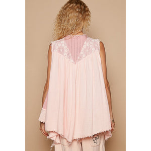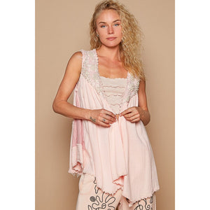 POL Embroidered Pearls Open Front Sleeveless Cardigan