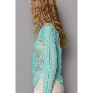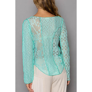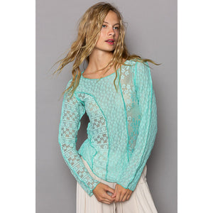 POL Exposed Seam Long Sleeve Lace Knit Top