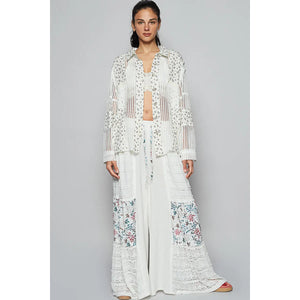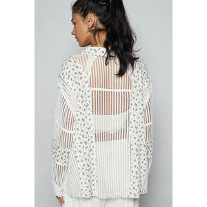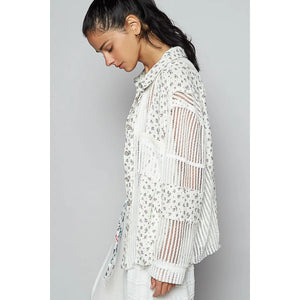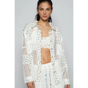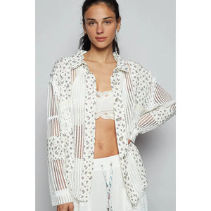 POL Floral Crochet Patchwork Long Sleeve Shirt