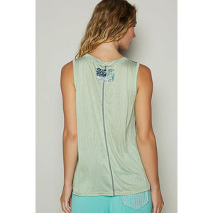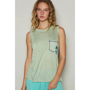 Elevate your casual look with this tank top featuring floral detail pocket patches. The floral accents add a charming and playful twist to the classic tank silhouette. With the convenient pocket patches, this top is both stylish and functional. Effortlessly chic, this tank top is a versatile addition to your wardrobe for any season.