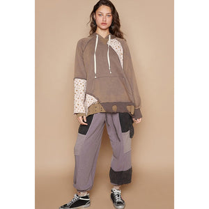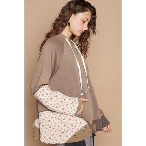 POL Floral Patchwork Distressed Drawstring Hoodie