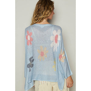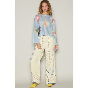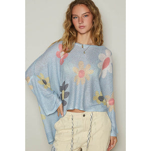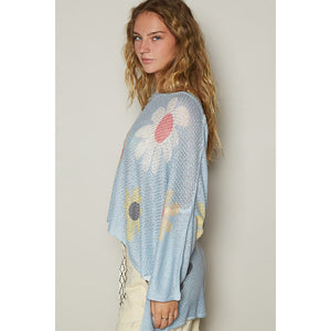 POL Flower Dropped Shoulder Long Sleeve Knit Top