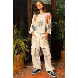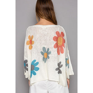 POL Flower Dropped Shoulder Long Sleeve Knit Top