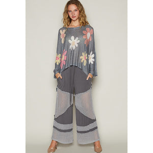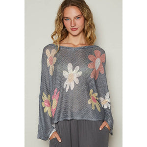 POL Flower Dropped Shoulder Long Sleeve Knit Top