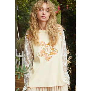 The Flower Patch Lace Sleeve Knit Top features a beautiful design with a mix of thermal and lace materials. It has a round neckline and full sleeves, offering a regular fit for versatile styling. The addition of patch details and a pointed solid pattern adds a unique touch to the top. This piece is perfect for adding a touch of elegance to your outfit while staying comfortable and stylish.