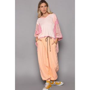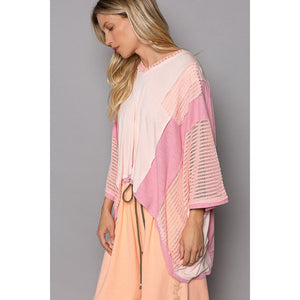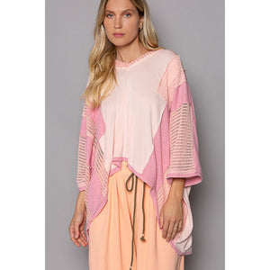The designed V-neckline knit top features an oversized fit and drop shoulder design, creating a relaxed and stylish silhouette. Made with a unique blend of see-through fabrics, this top offers a modern and edgy look that is perfect for making a statement. The frayed edge detailing throughout the garment adds a touch of texture and a hint of urban chic. Whether styled with jeans for a casual outing or tucked into a skirt for a more elevated look, this knit top is versatile and fashion-forward. Embrace the contemporary and trendsetting style of the V-neckline knit top for a bold and confident ensemble that showcases your individuality.