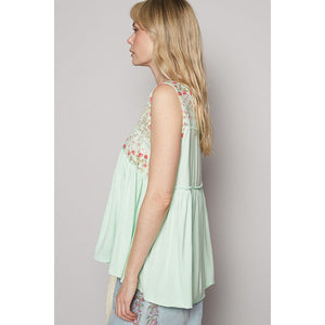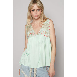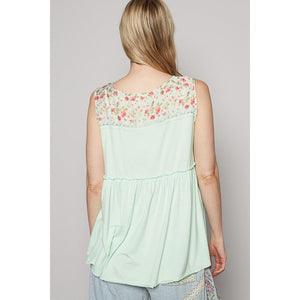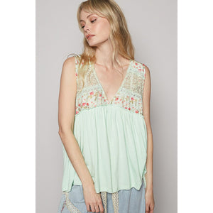 POL Lace Detail Frill Floral V-Neck Sleeveless Top