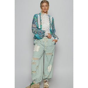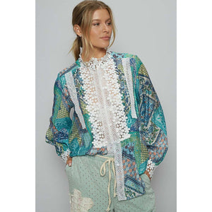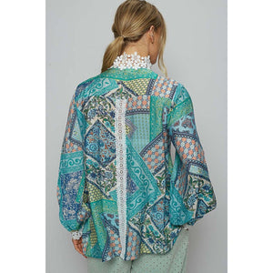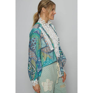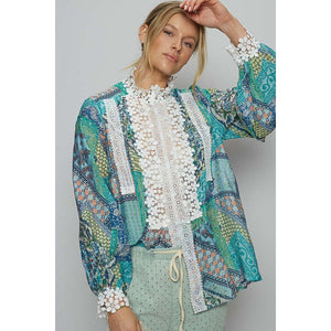 POL Lace Detail Printed Button Down Shirt