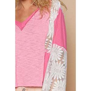 POL Lace Detail V-Neck Flare Sleeve Blouse