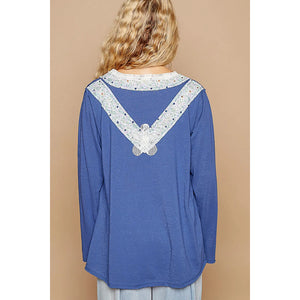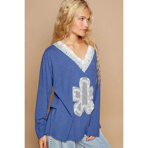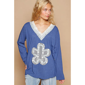 POL Lace Flower Patch Long Sleeve T-Shirt