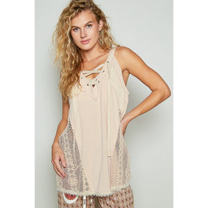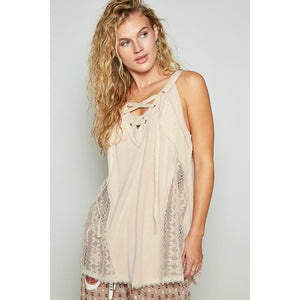 The Lace-Up Crochet Lace Tank is a chic and feminine top with intricate crochet lace detailing. The lace-up design adds a trendy and stylish element to this classic tank silhouette. Perfect for pairing with jeans, shorts, or skirts for a versatile and stylish outfit. Ideal for adding a touch of bohemian flair to your summer wardrobe.