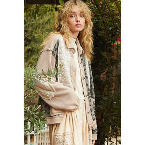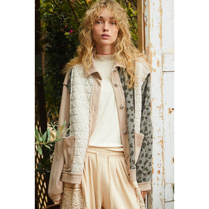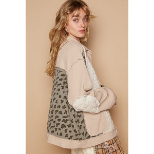 POL Leopard Exposed Seam Button Up Quilted Jacket