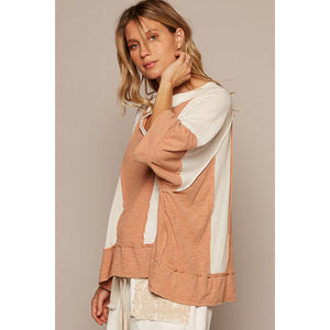 The Notched Frayed Edge Contrast Top is a versatile and stylish addition to your wardrobe. With its unique notched neckline and frayed edge detailing, this top exudes a trendy and casual vibe. The contrasting elements add visual interest and a modern touch to the design. Made from a comfortable fabric, this top is perfect for everyday wear. Pair it with jeans for a laid-back look, or dress it up with trousers for a more polished outfit. Whether you're heading to work or meeting friends for brunch, this top is a chic and easy-to-style option that will keep you looking fashionable and feeling confident.