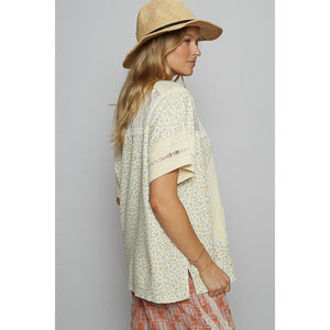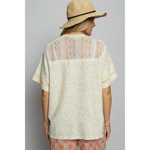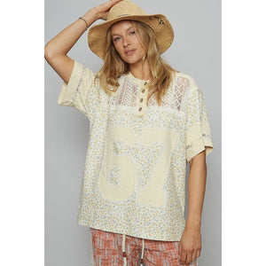 POL Number Floral Crochet Button Detail Half Sleeve Top