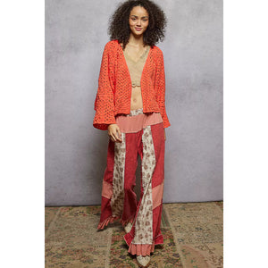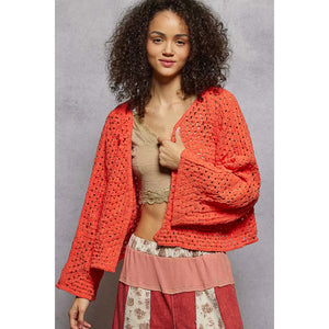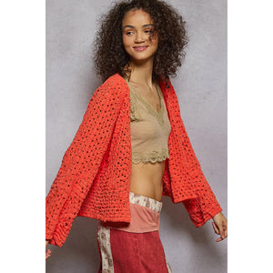 This open front cardigan showcases beautiful crochet patterns for a unique and charming style. The intricate detailing adds a touch of elegance to the design. Perfect for layering over a basic top or dress, this cardigan is a versatile wardrobe staple. The crochet work creates a lovely texture that elevates the overall look of the cardigan. Stay cozy and chic with this fashionable piece in your collection.