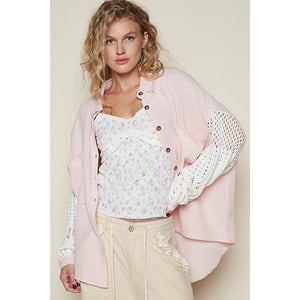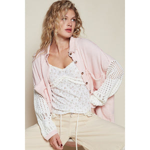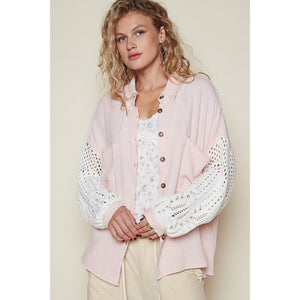 POL Openwork Lantern Sleeve Button Down Gauze Shirt