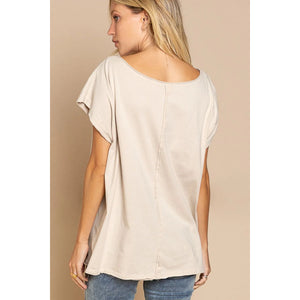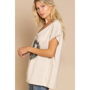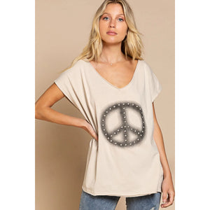POL Peace Sign Studded V-Neck T-Shirt
