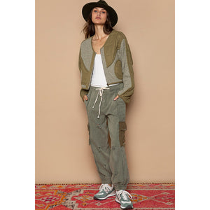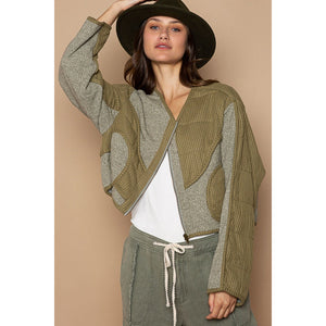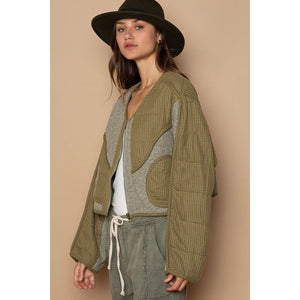 POL Quilted Knit Viding Detail Knit Patch Jacket