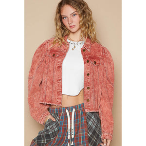 POL Raw Hem Button Up Cropped Denim Jacket