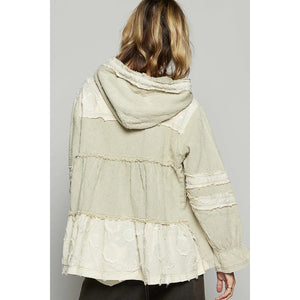 This fashion oversized denim jacket features a light wash finish with distinctive distressed raw edge details throughout. Crafted from soft cotton denim blend, it offers a relaxed comfortable fit perfect for casual layering. The jacket showcases deliberate fraying at the hemline and cuffs, creating an authentic vintage-inspired aesthetic. The classic button-up design with long sleeves makes it versatile for various styling options. The oversized silhouette provides a modern street style appeal while the light blue wash adds a fresh, effortless vibe to any outfit. Perfect for creating layered looks with tanks, tees, or dresses.