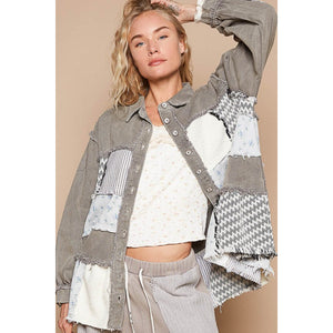 POL Raw Hem Patchwork Dropped Shoulder Jacket