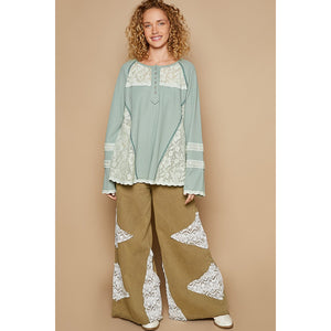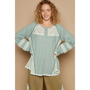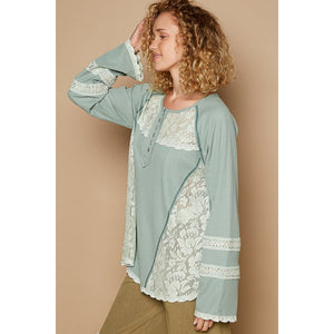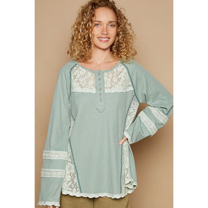 POL Round Neck Long Sleeve Lace Trim Thermal Top