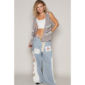 This Cardigan is a versatile and stylish layering piece for any wardrobe. With its delicate ruffled detailing along the open front, this cardigan adds a touch of femininity to your outfits. The sleeveless design makes it perfect for layering over tops in any season, offering both style and comfort. Whether worn with a dress for a polished look or paired with jeans for a more relaxed vibe, this cardigan is a versatile piece that can elevate any outfit.