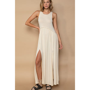 POL Sleeveless Back Zipper Front Slit Maxi Dress
