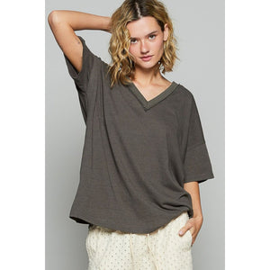A V-neck half sleeve T-shirt is a classic and versatile wardrobe staple that features a flattering V-shaped neckline and sleeves that end at the elbow. This style of T-shirt offers a casual and comfortable fit, perfect for everyday wear. The V-neck detail adds a touch of femininity and helps elongate the neckline, making it a timeless and essential piece in any wardrobe.