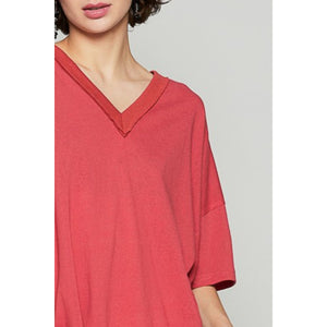 A V-neck half sleeve T-shirt is a classic and versatile wardrobe staple that features a flattering V-shaped neckline and sleeves that end at the elbow. This style of T-shirt offers a casual and comfortable fit, perfect for everyday wear. The V-neck detail adds a touch of femininity and helps elongate the neckline, making it a timeless and essential piece in any wardrobe.