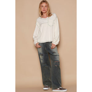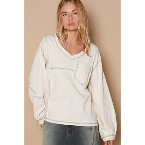 The V-Neck Knit Panel Exposed Seam Top is a versatile and stylish addition to any wardrobe. Featuring a V-neck design and a regular fit, this top is crafted from thermal and ribbed fabric, with overlock stitch details and pointed solid color accents adding a contemporary touch. Perfect for both casual and dressed-up looks, this top offers both comfort and sophistication. Elevate your outfit with this chic and modern knit top that is sure to become a staple in your wardrobe.